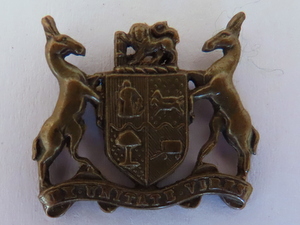 O1365 South African Railways and Harbours Brigade Cap badge voided center inferior quality WW II striking.